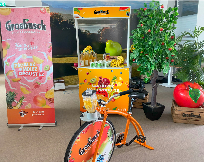 Communiquez sur l’importance d’une alimentation saine et équilibrée : louez notre Vélo Smoothie. Disponible partout en Grande Région, le concept est simple et éco-responsable : « Pédalez, mixez, dégustez ! »